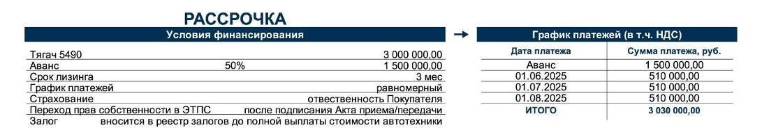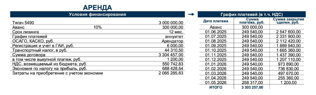 *** Первые два лизинговых платежа в начале графика снижены на 50% (от среднего размера лизингового платежа).